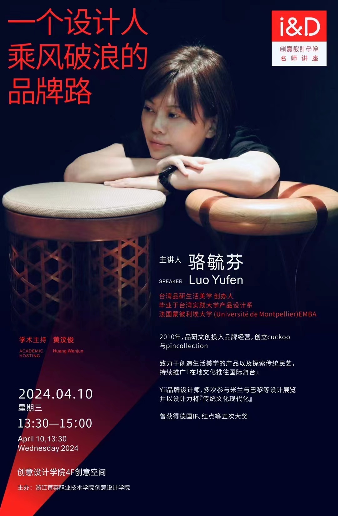 2024年4月10日下午,品研生活创始人骆毓芬在创意设计学院四楼创意空间与在场的学生和专业老师分享了她的成长故事和成就。本次讲座旨在探讨学习骆毓芬的人生成长之道以及在产品设计领域不断迈向成功的关键因素,吸引了众多产品艺术设计专业的学生和教师前来倾听,引发了他们对未来的深入思考。