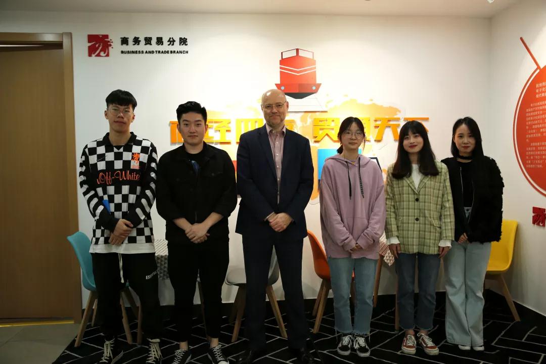上午11点钟,密德萨斯大学代表团来到跨贸基地二楼会议室和商务贸易分院的五名专升硕预科班的学生见面。Paul Kirk 不仅是密德萨斯大学语言及短期课程中心总监兼国际办公室副主任,而且具有28年的丰富英语教学经验。他先后在8个不同的国家工作过,曾任英国剑桥雅思考官、英国剑桥雅思考官培训师,具有丰富的剑桥雅思教学经验和测评经验。Paul Kirk给商务贸易分院预科班的学员们做了一个多小时的专题讲座,分享宝贵的应考经验,鼓励同学们努力学习、早日通过雅思考试、顺利留学英国,并亲切地回答了学生们提出的相关问题。