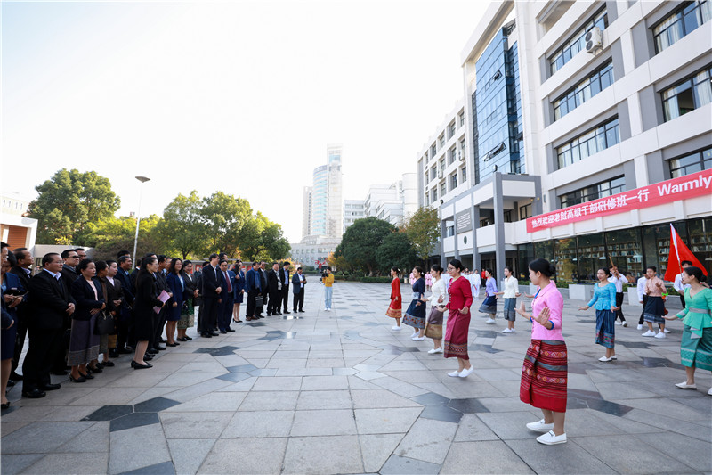 老挝高级干部研修班来育英学院考察交流
