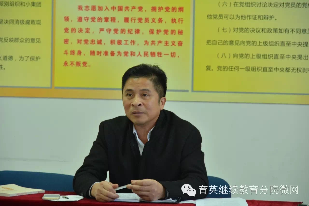 11月24日(星期二)12:40在分院六楼党团活动室召开支部党员会议,本次会议的主要议程是发展新党员。分院全体党员参加会议,14级党章学习小组组长列席会议,分院副院长、党支部书记施红波老师主持会议。