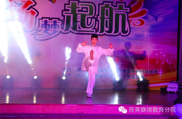 晚会由“青春岁月”、“青春放歌”、“圆梦青春”三个篇章组成,荟萃了继续教育分院和经济贸易系、民航与旅游分院学生的热情和活力。听了继续教育分院卢庆富院长热情洋溢的晚会致词、观看2015年成人节系列活动回顾视频之后,继续教育分院同学带来了热辣劲爆的舞蹈串烧、高雅脱俗的古筝演奏、青春文艺的配乐朗诵、靓丽时尚的礼服秀、扣人心弦的武术表演;经济贸易系奉上了活力四射的街舞表演、寓意深刻的校园小品、青春洋溢的打鼓舞;民航与旅游分院选送了精彩绝伦的太极表演。整场晚会可谓是一场精彩的视听盛宴,多风格、多主题的表演汇聚成一道靓丽的风景线。台上台下抽奖互动,一次次地将现场的气氛推向高潮。