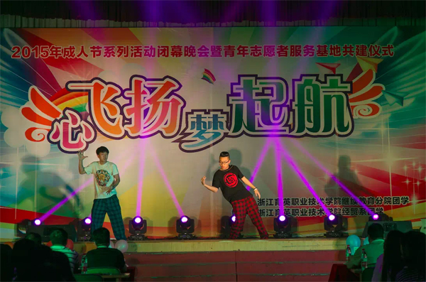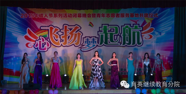 2015年6月4日晚18:30,继续教育分院在体育馆举办“心飞扬 梦起航”2015年成人节系列活动闭幕晚会。杭州经济技术开发区青少年宫主任徐华宝、继续教育分院院长卢庆富、民航与旅游分院党总支书记王贤军、经济贸易系党总支书记田翔、艺术设计与人文系党总支书记罗妮娜、继续教育分院党支部书记施红波、学院团委副书记石宇钦、学院团委孙钦、民航与旅游分院团总支书记姚蓓蕾、经济贸易系团总支书记余国浩、继续教育分院团总支书记李巧巧以及各分院系团学代表出席并观看了晚会。