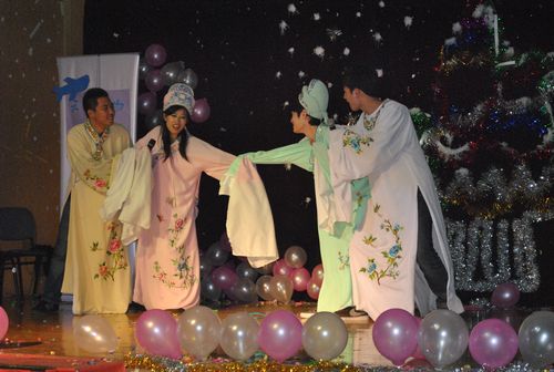 晚上8点40左右,最后一个由我们09空乘5班送上的喜剧小品《新梁祝外传》在同学们的企盼中粉墨登场,演员们滑稽的表演、幽默的语言,羸得了全场观众的热烈掌声;独特的创新立意,给台下评委老师和同学们留下了深刻的印象。同时,充分展示了空乘学子的英语口语水平和表演技能的体现,也进一步达到了寓学于乐的效果,为全院营造了学习英语的浓厚氛围。