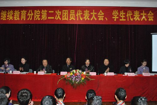 2010年12月28日晚上6点30分,浙江育英职业技术学院继续教育分院第二次团员代表大会、学生代表大会在3号楼1号报告厅隆重召开。学院副院长陈六明、信息中心主任刘志仁、院团委书记邬佳、分院院长耿大玉、副院长卢庆富、学生处处长张文娟,以及分院的各位老师和270多名学生(其中学生选举代表171名)参加了此次大会。