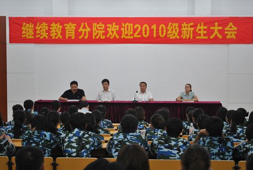 2010年9月14日晚,分院召开2010级新生欢迎大会,学院党政领导耿大玉院长、卢庆富副院长、姜润杭副院长、黄华副院长、张文娟处长、姚实副主任、王卫平副处长、石淼副处长以及各班主任老师参加了大会。会议由副院长卢庆富主持。耿大玉院长首先发表讲话,代表学院领导对10级新生的到来表示欢迎,并做专业相关知识解读,使同学们对自己的专业有一定的熟悉;姜润杭副院长代表全体教职工,对10级新生的到来表示欢迎,更加具体的对专业系统、学生学籍管理进行全面介绍。同学们认真听讲,这是新生入学的第一课,对日后的专业学习有很好的帮助作用。