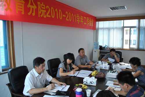 2010年8月29日继续教育分院中层干部会议在行政楼二楼会议室召开。会议由继续教育分院姜润杭副院长主持,会议就“分院2010-2011学年工作要点”展开热烈讨论,同时对各部门的工作进行了详尽的安排。