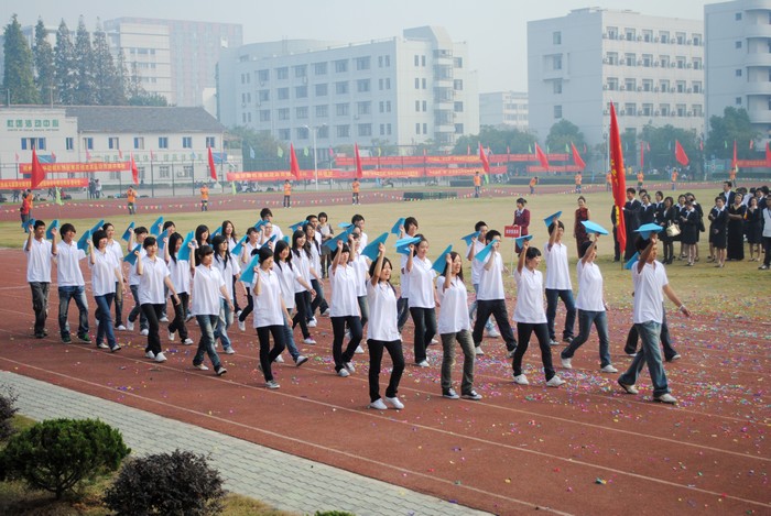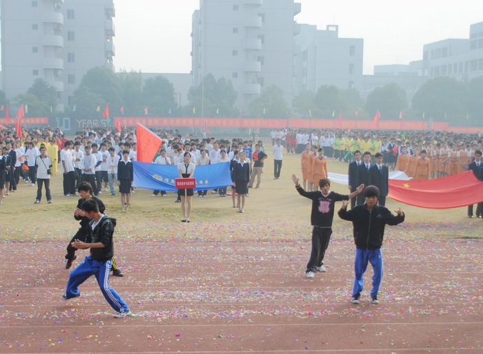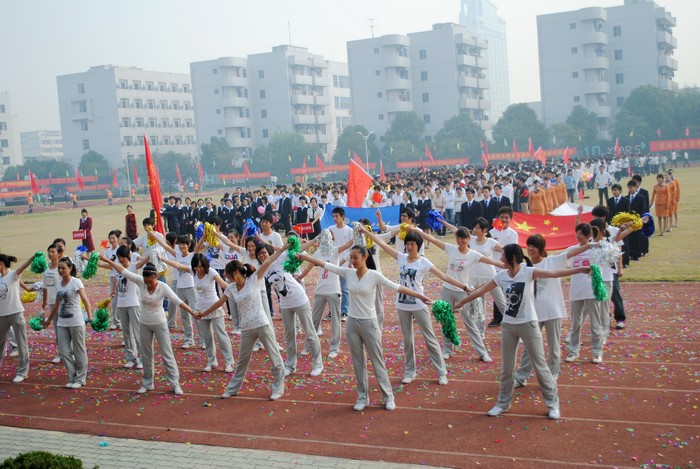 2009年10月23日,秋日的清晨略带凉意,但是田径场上已人潮涌动。今天,浙江育英职业技术学院在田径场上隆重举行了2009年第十届校运动会。7点50分,运动会开幕式顺利拉开帷幕,全体参加运动会的班级方队有序入场,每个方队都纷纷出招,各有特色。继续教育分院空中乘务专业的同学们分成五个方队,分别用蓝色纸飞机,蓝白色气球,彩花,舞蹈等表达了他们对蓝天的向往以及对本届运动会的支持。在简短却又不失精彩的开幕式后,运动员们纷纷开始回到自己的场地准备自己的比赛项目。