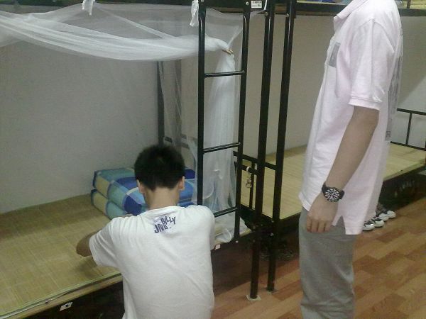 寝室同学学习如何叠被子