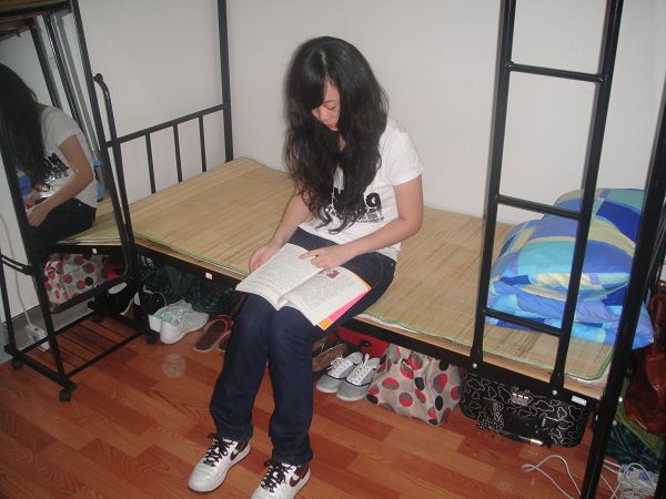 女生在寝室安静的看书