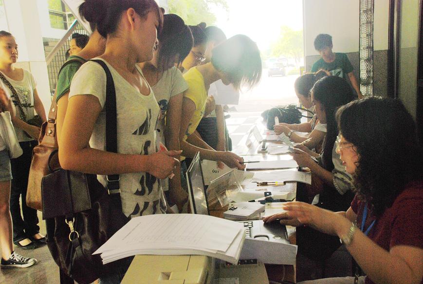 浙江育英职业技术学院民航分院赵淑桐院长带领五位考官主持了专业面试。专业面试内容主要包括:体形、外貌测试;语言表达测试;英语口语测试。同学们在面试中都表现得很出色,特别是自选的才艺表演——唱歌、跳舞、散打、朗诵……博得了阵阵掌声。有的同学还在面试现场谈了对学校的第一印象,提出了许多宝贵意见。他们对未来的憧憬、自信的表现以及强烈的参与精神赢得了评委的赞许。整体来看,同学们的素质是较好的。除了专业面试,校医院还对同学们进行了严格的体检。