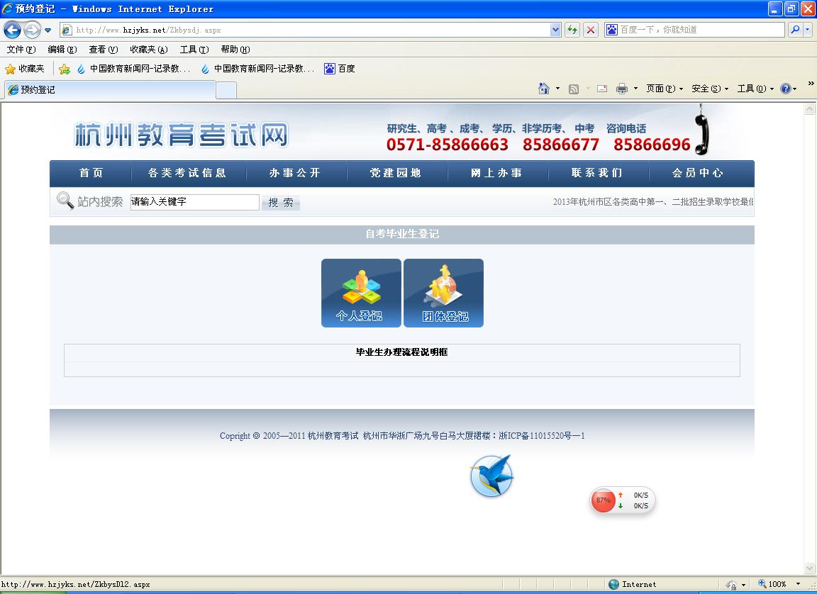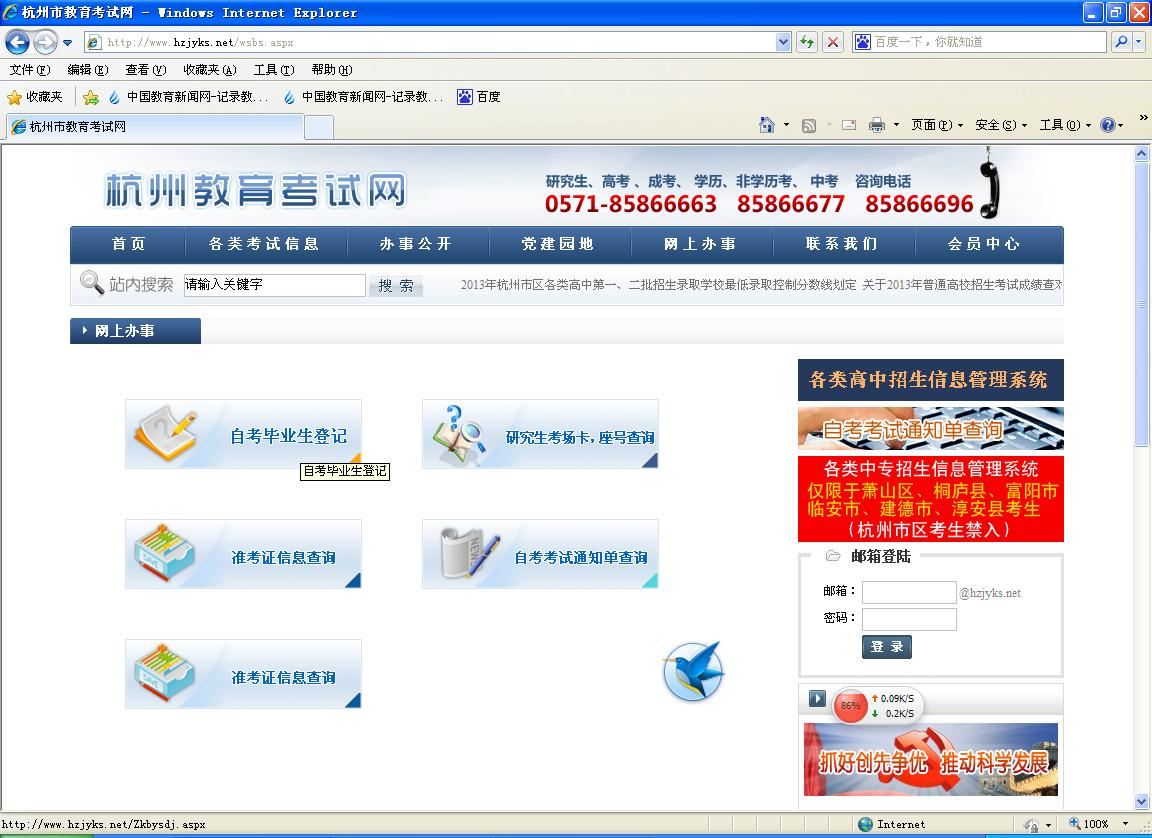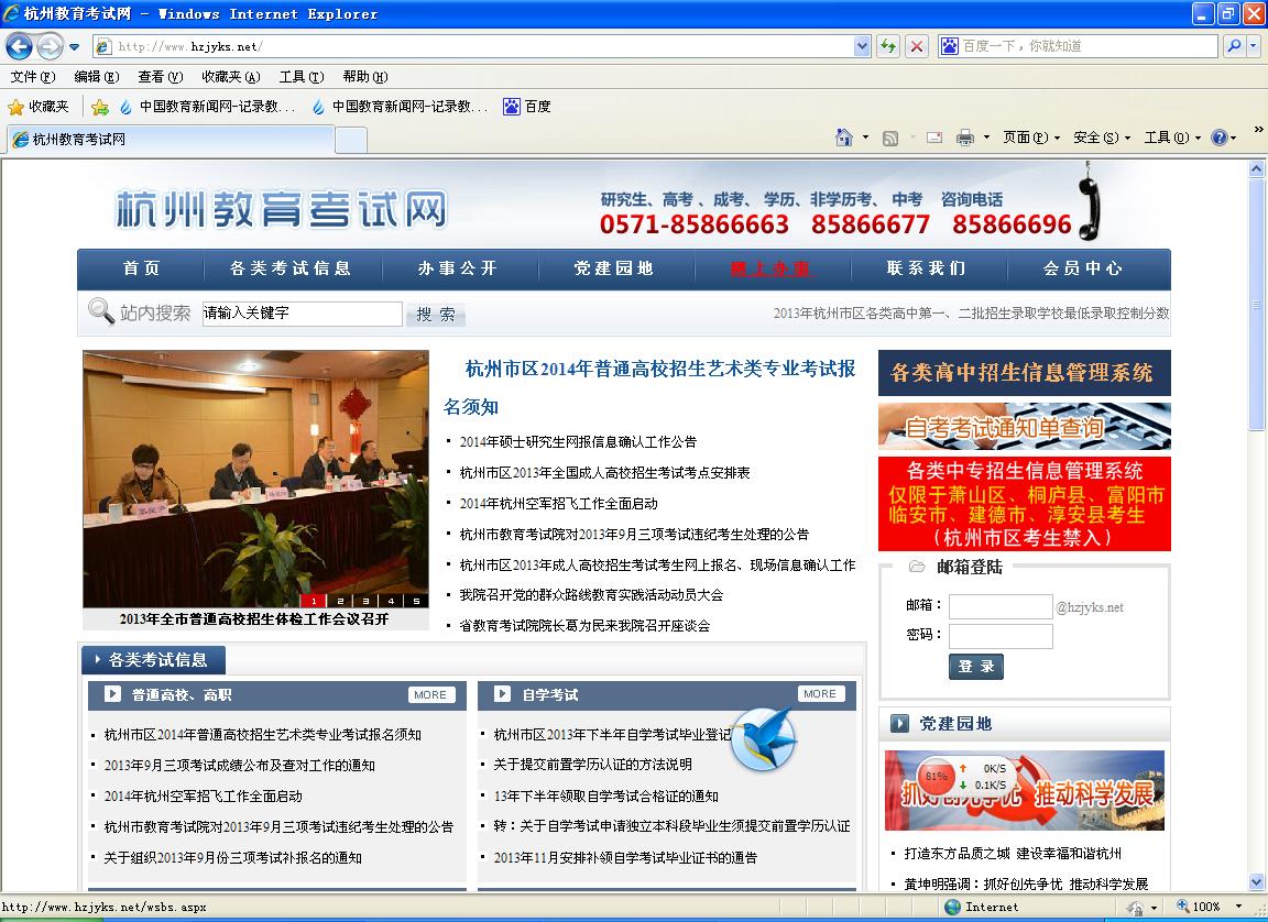 <!--[if !supportLists]-->一、<!--[endif]-->打开杭州市教育考试院网站。网址:http://www.hzjyks.net/