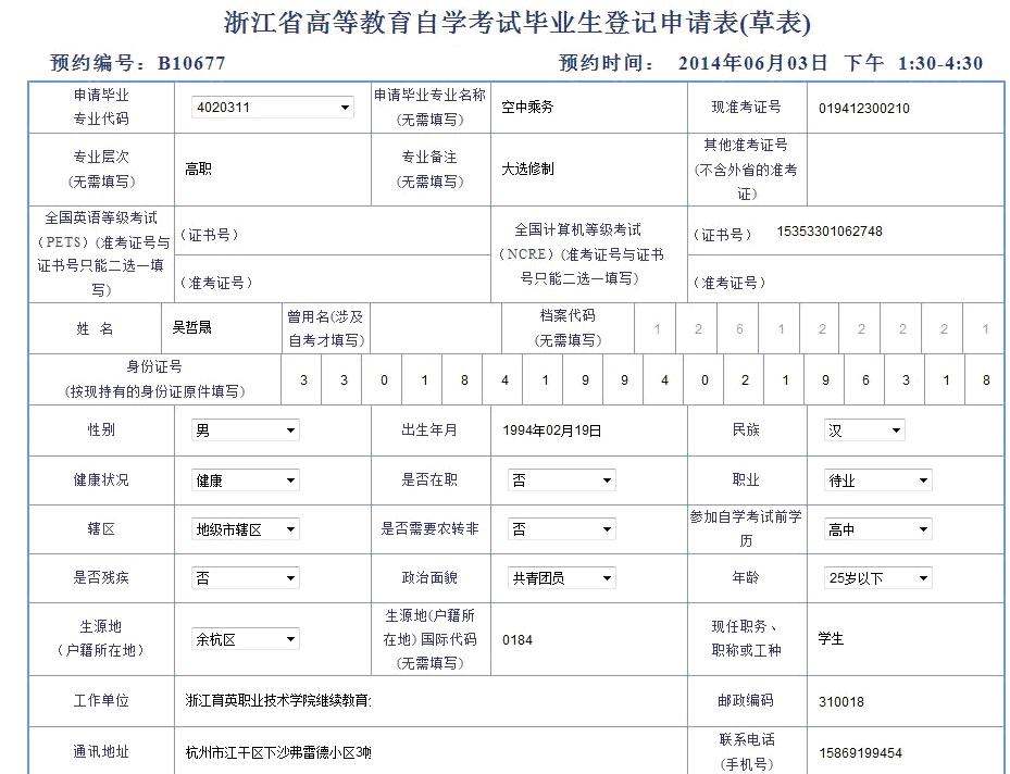 <!--[if !supportLists]-->四、<!--[endif]-->点击“自考毕业生登记”后,会出现如下页面: