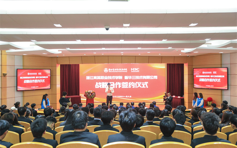 11月8日,育英学院与新华三技术有限公司战略合作签约仪式在三楼报告厅举行。