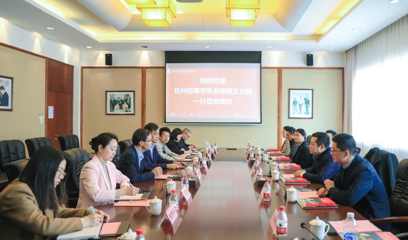 欧阳驹介绍了数字商贸学院基本情况、专业特色和优势、建设思路与重点等。他提到,近年来商贸学院在学校总体教育教学事业的顶层设计下,以“数字技术+”复合型新商科人才培养为使命,通过“一核两线三全”,协同各领军企业全面开展各项合作,也期待能与杭州百事可乐在人才培养与发展上展开深入合作。