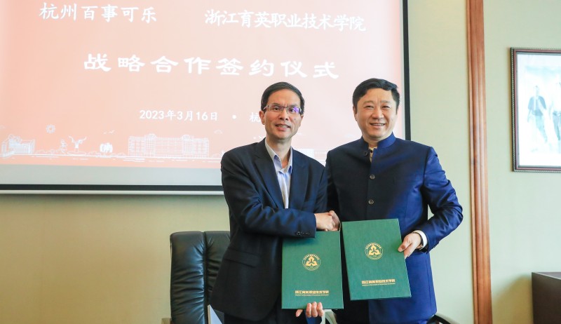 3月16日,学校与杭州百事可乐战略合作签约仪式在九楼会议室举行。杭州百事可乐总经理王立强,高级销售总监王忠欢,总经理业务助理兼销售发展部总监严鹏,学校校长丁金昌,副校长崔海辉,数字商贸学院院长欧阳驹等领导出席签约仪式。崔海辉主持仪式。