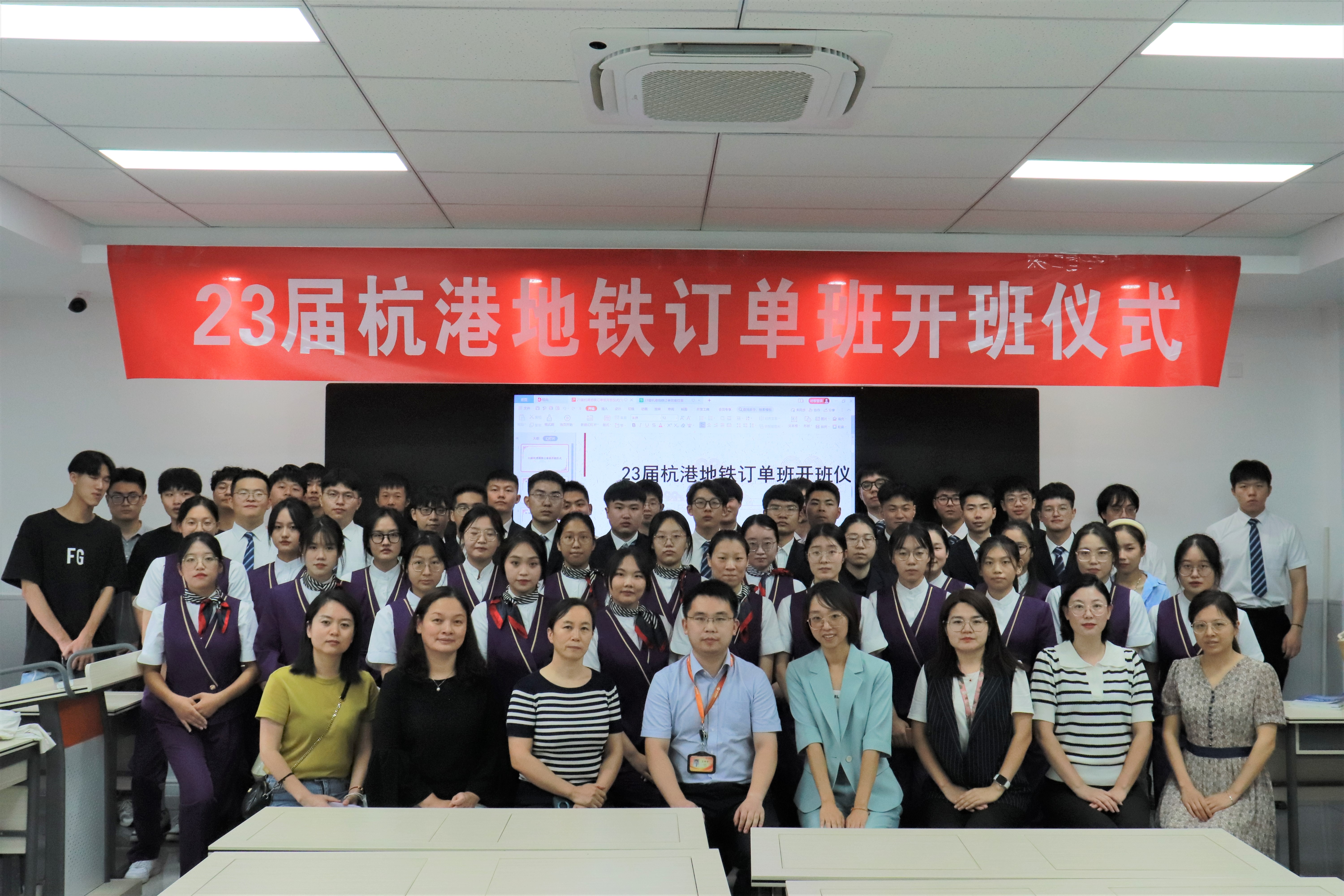 9月13日,23届杭港地铁订单班开班仪式顺利举行。民航交通学院副院长韩丽、订单班教师代表李英、王琳、樊静华,杭港地铁人力资源部经理沈建龙、培训部主任、老师以及订单班全体成员出席了本次开班仪式。