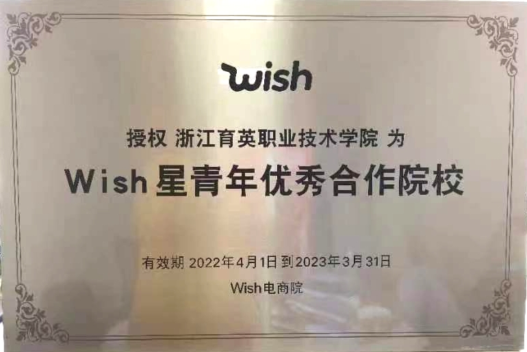 2022年5月6日,我院跨境电商专业代表浙江育英职业技术学院荣膺参与了wish官方新一年度的“wish星青年优秀合作院校”授牌仪式,与跨境电商平台wish展开全面战略合作,由于疫情原因,授牌仪式从简。Wish是知名跨国公司全球最大的移动端跨境电商平台,我院进入“Wish星青年优秀合作院校”名单,是数字贸易分院跨境电商专业不断奋进,推开了国际知名企业校企合作领域的大门,全面提升我院跨境电商人才培养质量的重要举措。