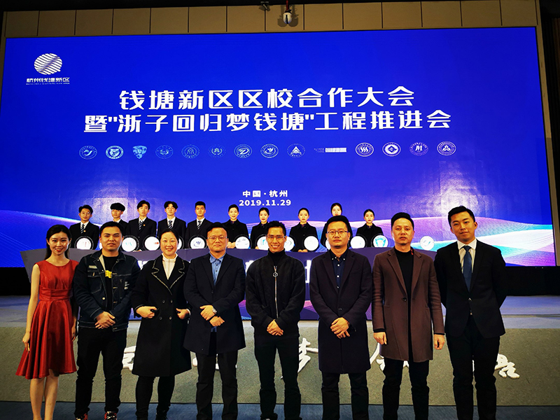 2019年11月29日上午,杭州钱塘新区区校合作暨“浙子回归梦钱塘”工程推进大会在大创小镇国际创博中心召开。区内14所高校主要负责人,区内校企合作企业代表及各创新园区、平台负责人,高层次人才,企业代表,校友企业代表,师生代表以及中央、省、市、新区媒体400多人参会。