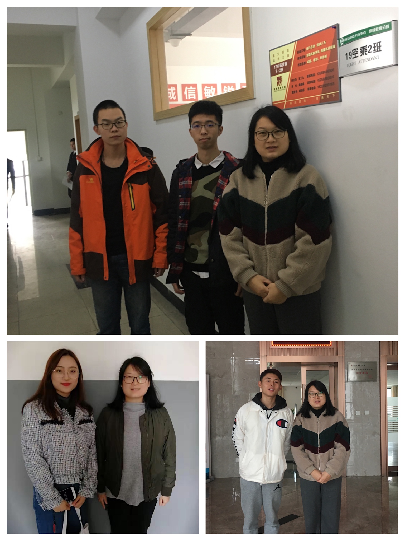 为深入了解大三学生的实习就业情况,第11、12周,民航交通分院实训中心指导老师楼海燕走访了分别在上海铁路局杭州客运段、浙江省人民大会堂、上城区行政服务中心、学悦青少年中心、浙江省档案事务所、杭州西投物业服务管理有限公司、布莱德服饰、中公教育等单位实习的17位同学们。