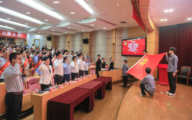 谢鑫发表讲话。她说,一年来,全体师生党员奋战在教育教学、科研管理、后勤服务等各个岗位,推进党建与思政工作不断提质升级,“育英党建红”品牌愈发响亮,党建引领事业发展更加有力。育英党建在全国舞台上展现风采,得到教育主管部门认可,赢得社会广泛关注。这一年,学校工作在党建引领下全面发展,持续把红色基因厚植于人才培养全过程,“三种精神”成为学生的“精神坐标”;持续夯实基层党组织党建基础,持续抓好党员干部队伍建设;持续挖掘各基层党组织党建特色,打响党建思政品牌;持续深化党群服务中心建设,强化党建工作以师生为中心的理念。
