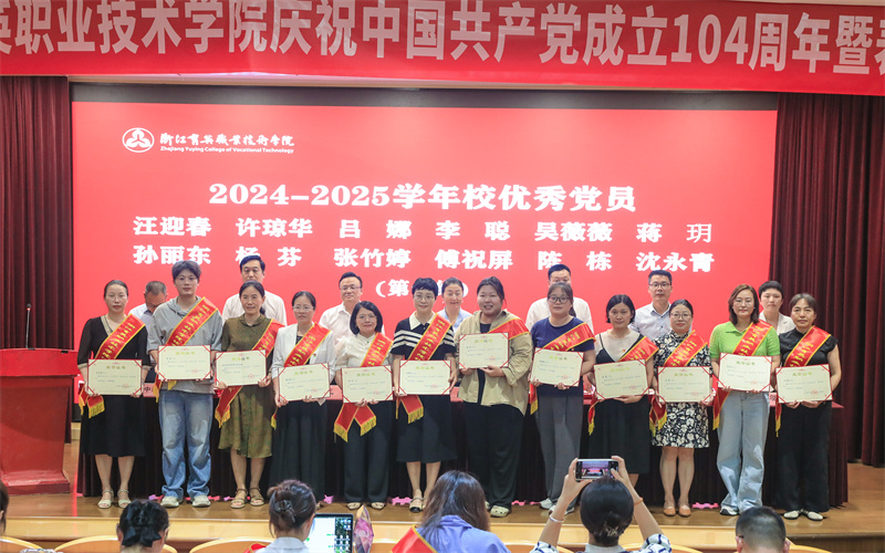 邬佳宣读表彰决定。2025年度浙江省高校思政微课大赛获奖者,2024年度浙江献血总量标杆高校、千人献血率标杆高校获奖集体代表,学校2024-2025学年先进基层党组织、优秀党员、优秀党务工作者和先进党章学习小组获奖者及集体代表受到表彰。