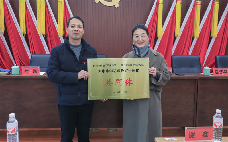 2024年12月25日下午,浙江育英职业技术学院与钱塘区景苑中学大中小学思政教育一体化共同体暨党建共建单位揭牌仪式在景苑中学举行。育英学院党委书记、副校长谢鑫,公共教学部党总支书记、主任、马克思主义学院院长陈贤平,党总支副书记、副主任谢剑峰,景苑中学党总支书记邱松良,党总支副书记、校长叶胤,党总支委员、副校长张文章出席揭牌仪式。我校公共教学部党员教师代表和景苑中学全体党员教师参加。叶胤主持会议。