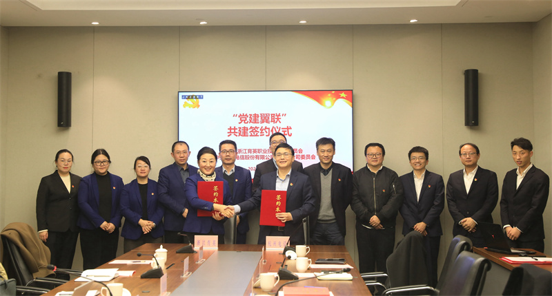 12月11日,浙江育英职业技术学院党委与中国电信杭州分公司党委在中国电信浙江创新园举行党建共建签约仪式。双方将充分发挥党建共建的桥梁和纽带作用,切实将党的政治优势、组织优势转化为发展优势,携手构建“党建引领、共建共赢”的党建工作新格局,为双方单位和服务区域高质量发展“添劲赋能”。