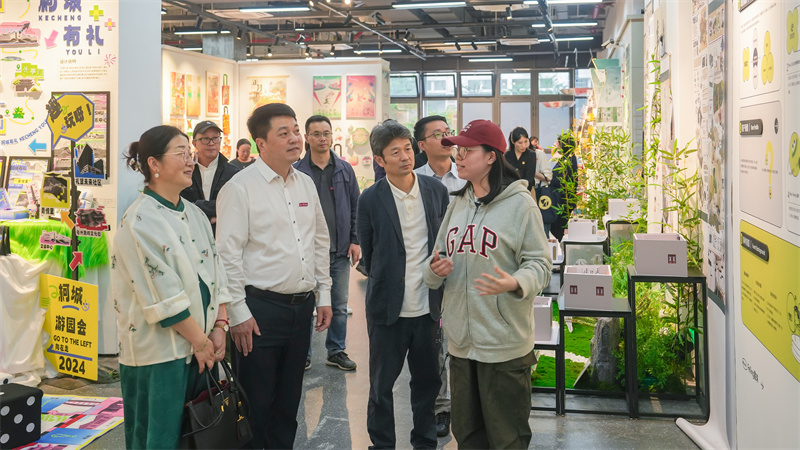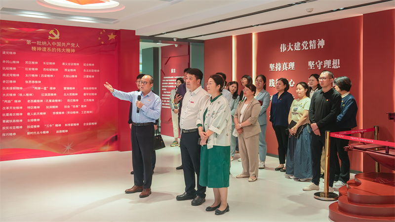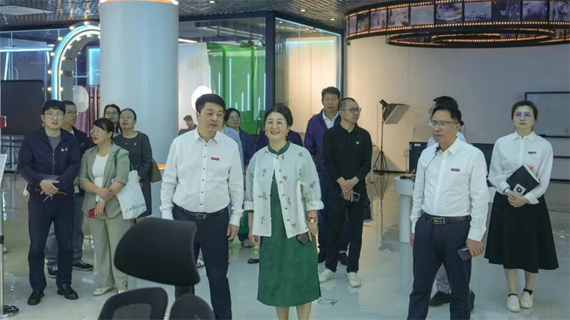 谢鑫一行参观了精神的力量——中国共产党人的精神谱系展示馆,观看了艺术设计学院毕业展、全国电子商务职业教育数据中心、世界数字商务发展历程展示馆等。马克思主义学院党总支书记、院长张国宏介绍了中国共产党人的精神谱系展示馆建设的初心、使命和展厅设计思路,并带领大家一起回顾中国共产党人精神谱系的发展历程;艺术设计学院院长周保平介绍了学生毕业设计展的情况;电子商务学院院长张枝军介绍了该学院近年来取得的标志性办学成果。