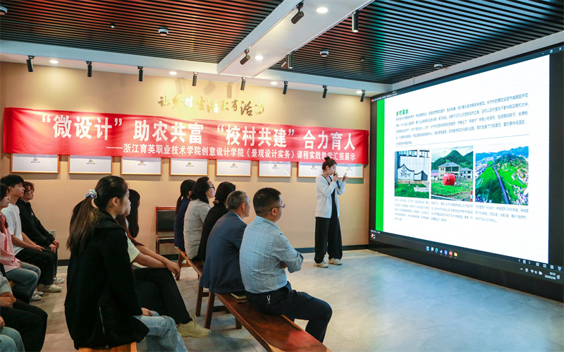 浙江育英职业技术学院创意设计学院环境艺术设计专业学生《景观设计实务》课程汇报会在建德杨村桥镇长宁村党群服务中心举行。学校党委书记、副校长谢鑫,创意设计学院副院长黄汶俊,创意设计学院党总支副书记、院长助理高嘉佳,建德市杨村桥镇党委副书记杨涛,杨村桥镇长宁村党总支书记、主任朱宁斌等听取同学们的课程汇报。