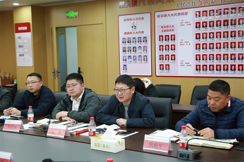 各乡镇代表介绍了各自的区域特点、产业发展情况和需求等。杨村桥镇长宁村书记朱宁斌说,长宁村是育英和建德共建项目的受益者。学生的课堂实训农产品包装设计作品在村里得到实际应用,提升了长宁村农产品的品牌效益,助力了老百姓集体增收,取得了实实在在的成果。大洋镇代表说,育英学院在大洋镇开展的“大手拉小手”系列活动受到家长和孩子们的欢迎。在座乡镇代表表示,希望进一步深化合作、共建共赢。