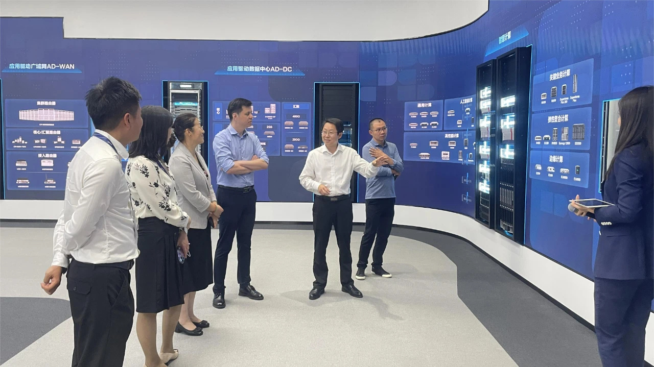 谢鑫一行参观了新华三创新体验中心,听取了新华三集团的整体情况介绍,详细了解了新华三的历史发展、企业文化等,在AIGC、数字化基础设施以及助力智慧城市、数字政府、智慧医疗、智慧教育等各行业数字化转型中取得的创新成就和成功经验,近距离感受和体验新华三在数字化领域的实践成果。