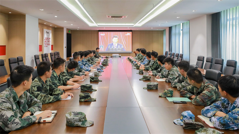 全国高校百强社团荣伍社退役军人集中收看开幕会盛况