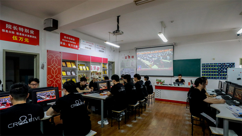 信息技术学院创意班学生集中收看开幕会盛况