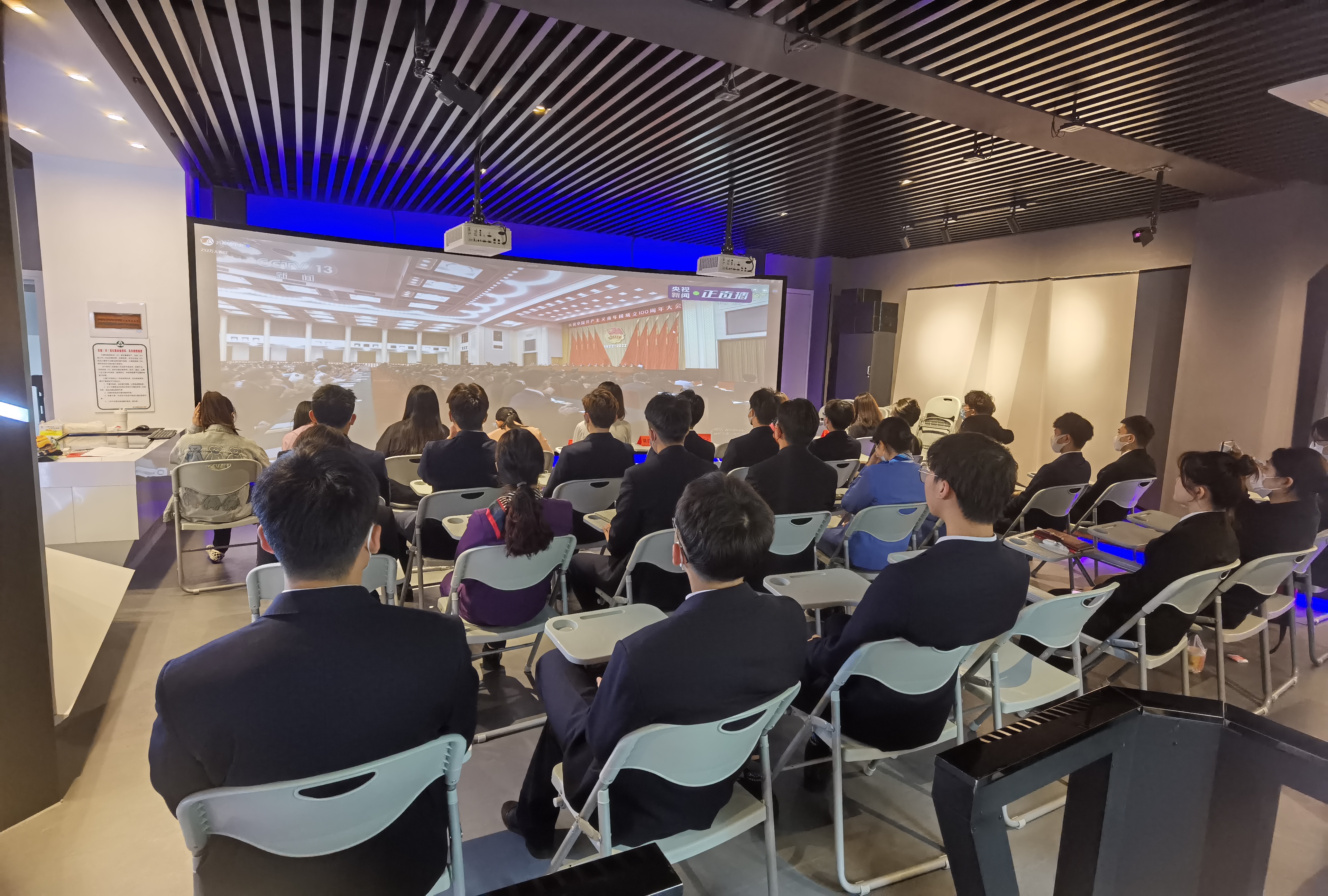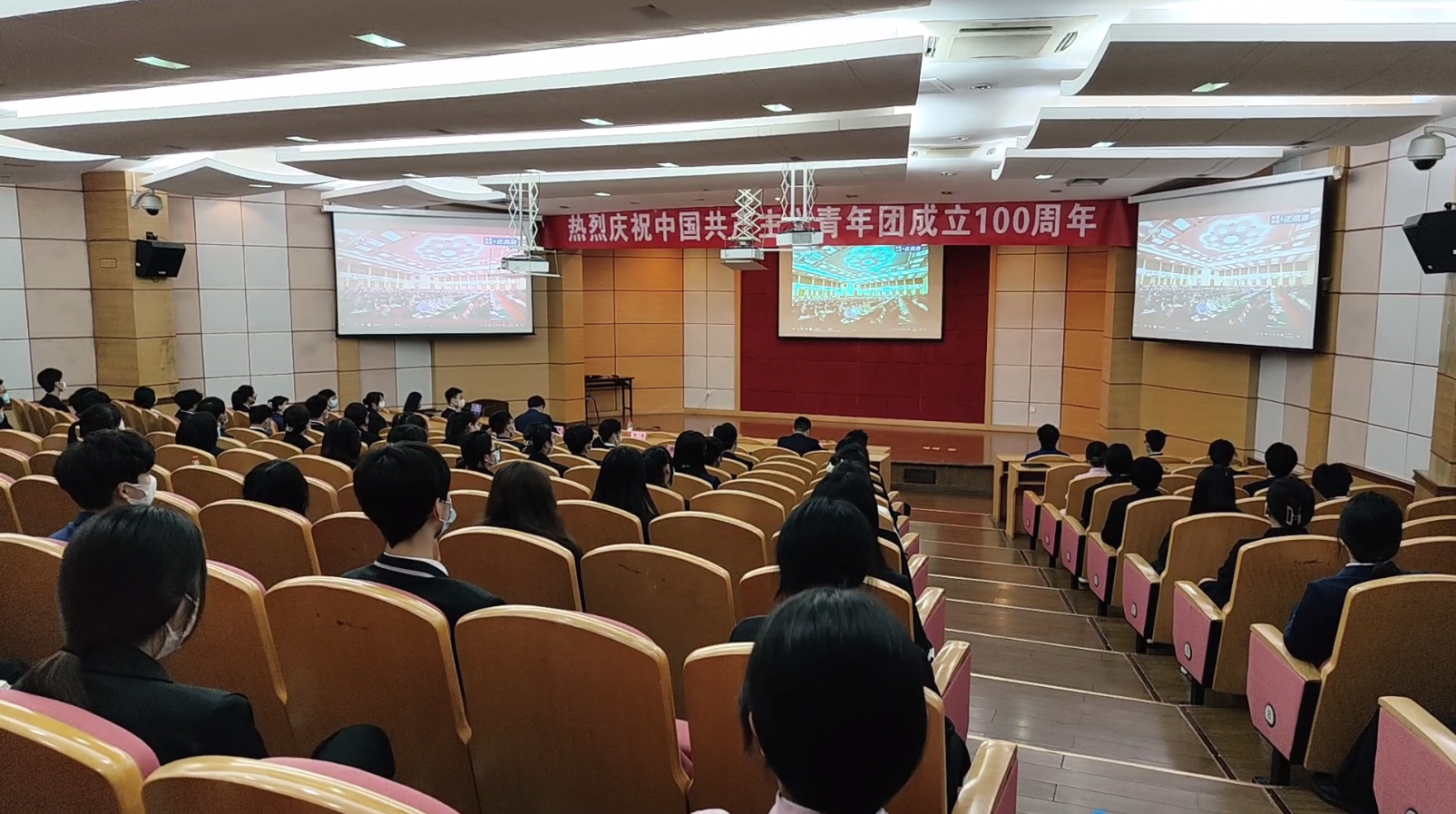学院党委书记、副院长谢鑫,副院长王敏、崔海辉,党委委员张中新、郑国军、邬佳,团委副书记孙钦、杨梦乐,及团员青年代表在学院三号楼三楼报告厅观看大会直播。各分院分别组织青年学生观看大会直播。