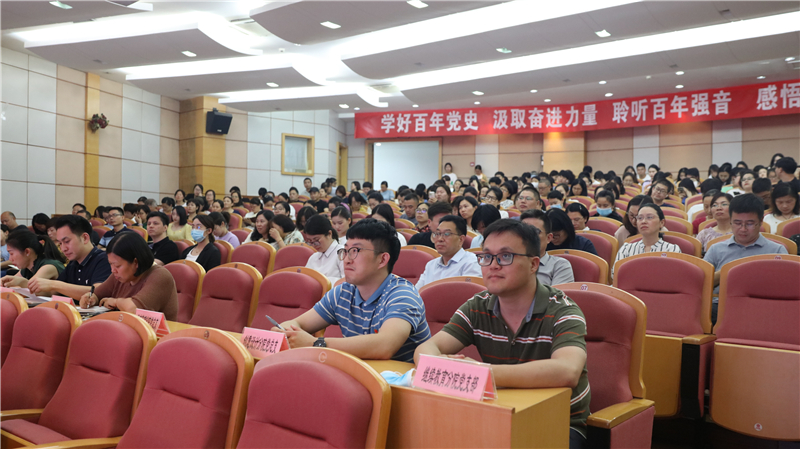 6月8日下午,杭州市教育局党委委员、副局长、党史学习教育第三巡回指导组组长高宁来学院开展党史学习教育专题宣讲。执行院长黄爱平,党委书记、副院长谢鑫,纪委书记、副院长王敏,副院长徐晓斌,全体教职工党员及学生代表近300人参加宣讲会。谢鑫主持宣讲会。