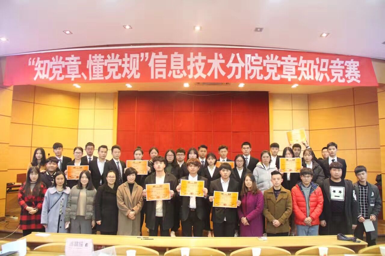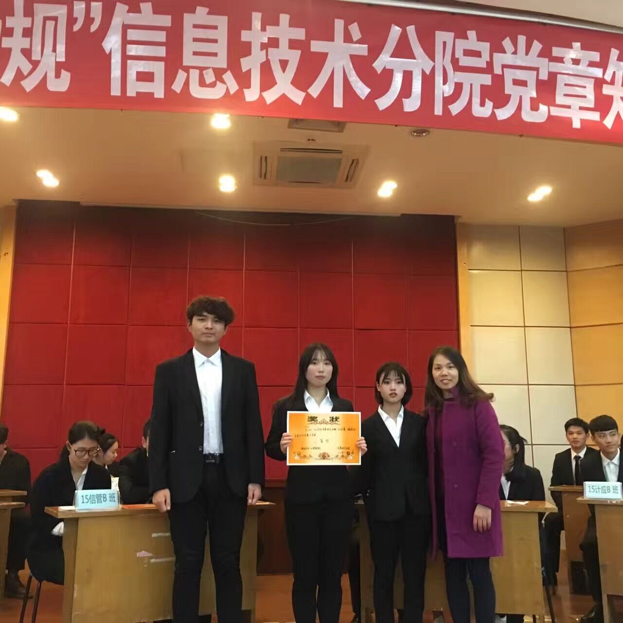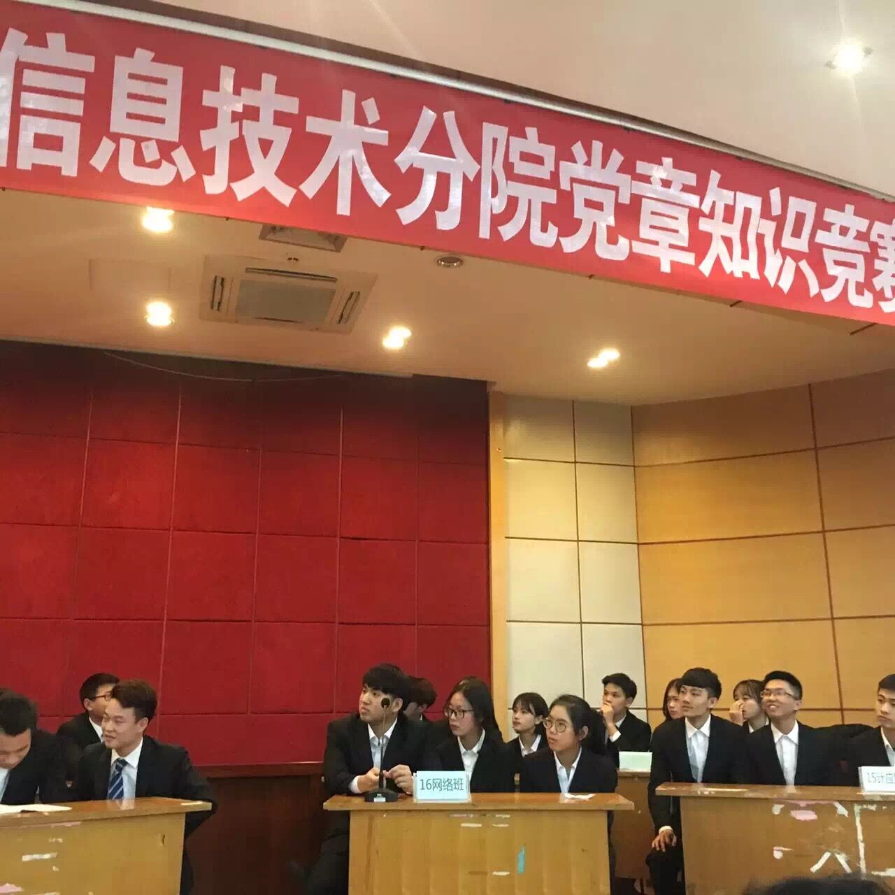 2016年12月1日晚,“知党章、懂党规”信息技术分院党章知识竞赛圆满结束。本次比赛分初赛和决赛,初赛面向分院大一大二全体学生,以笔试的形成进行,最终进入决赛的代表队是15计应A,15计应B,15信管A,15信管B,16信管B,16计应3+2B,16网络,16通信。