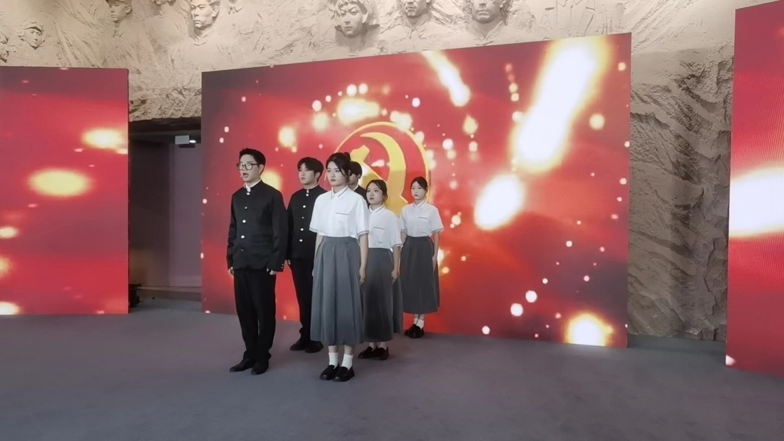 21会展班徐亮、23空五A班任熠琳、22高铁A班李一杭、23直播A班吴晨、22空五C班顾晴晴、23会展B班陈雅惠的作品《密码》,他们用激昂的语调倾诉着青年对中国精神深深的领悟。指导教师尚佳。