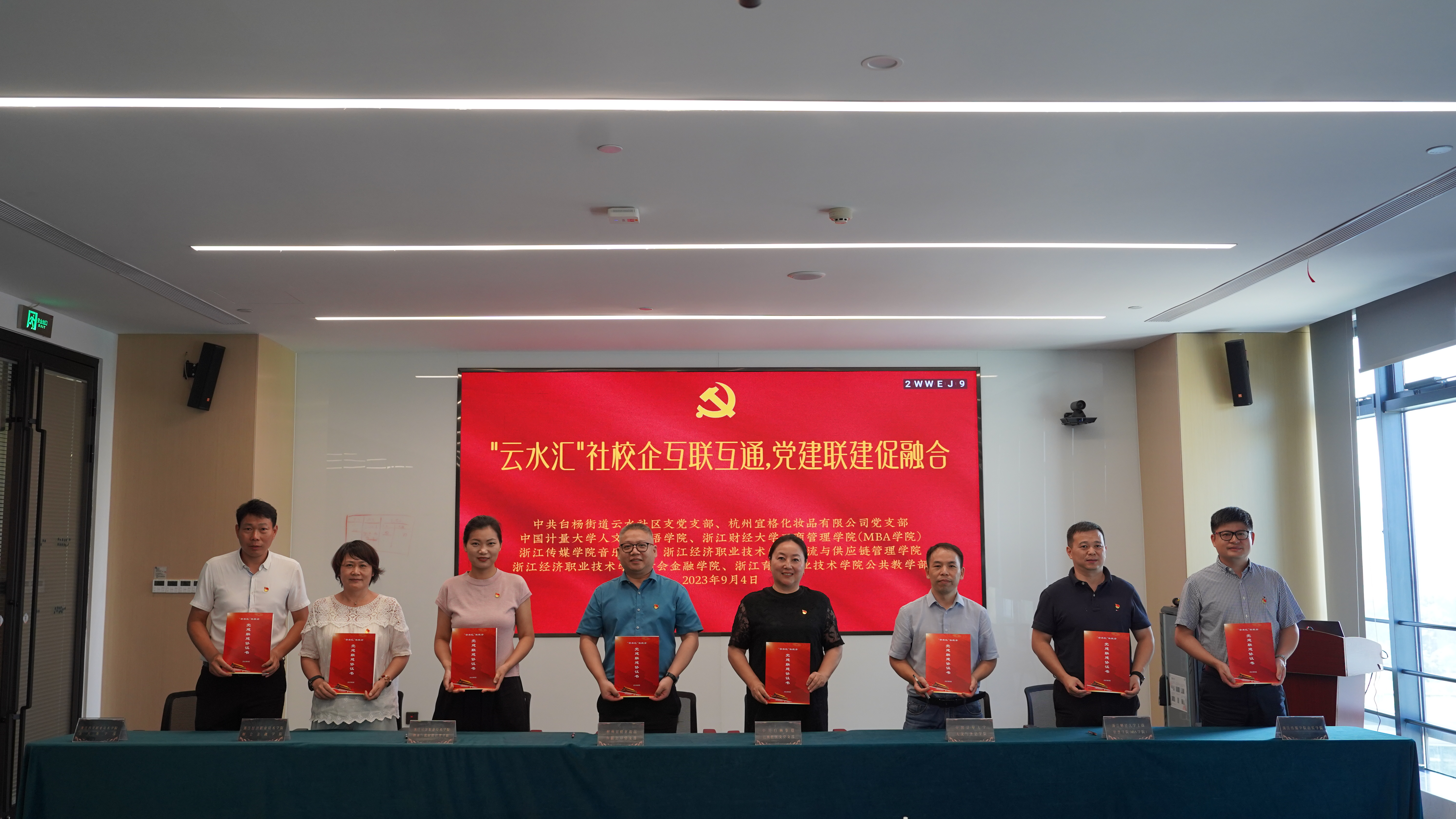 2023年9月4日下午2点,由白杨街道云水社区党支部主办的“云水汇”社校企党建联建活动在新加坡科技园元创公园举行。学院公共教学部党总支部副书记谢剑峰,思政教研室侯培玲参加本次党建共建活动。同时参加本次共建活动的还有中共白杨街道云水社区党支部书记孙桂英,浙江宜格美妆集团党支部书记、集团副总裁张大勇、中国计量大学人文与外语学院党委副书记金民华、浙江财经大学工商管理学院(MBA学院)党委副书记吴玻、浙江传媒学院音乐学院党委书记赵月峰、浙江经济职业技术学院物流与供应链管理学院党总支副书记崔悦、浙江经济职业技术学院财会金融学院党总支部书记胡玲敏。活动由孙桂英书记主持。