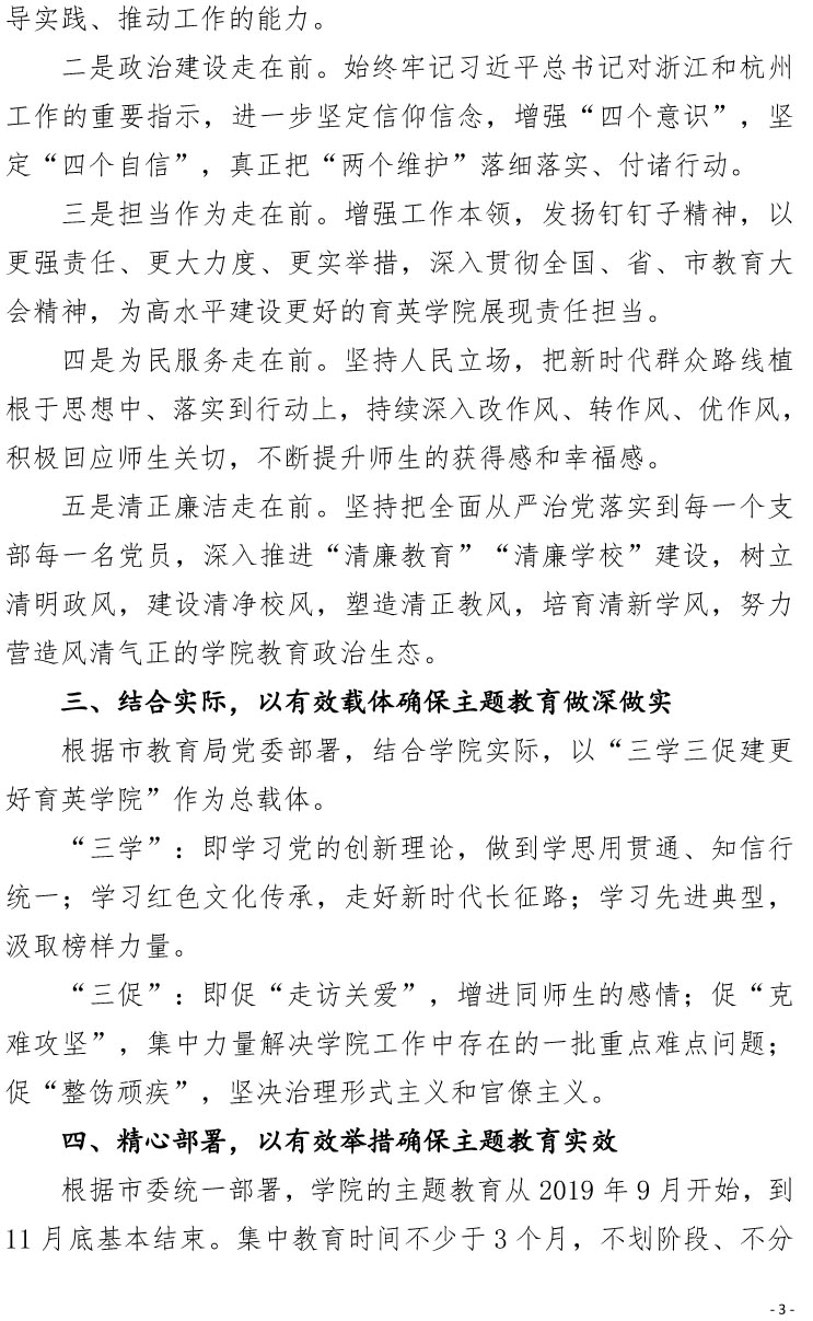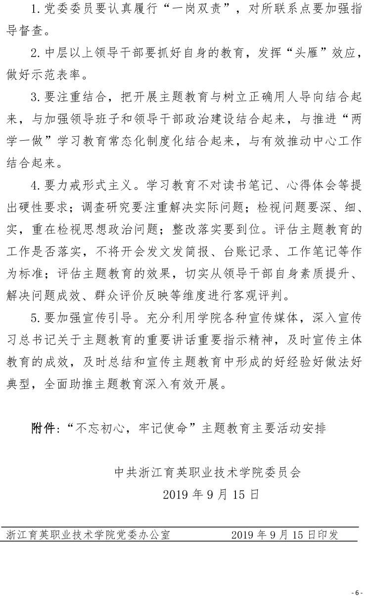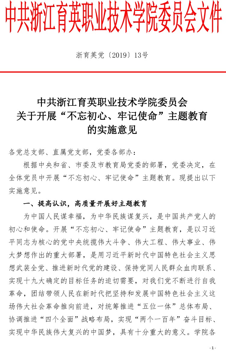中共浙江育英职业技术学院委员会关于开展“不忘初心、牢记使命”主题教育的实施意见