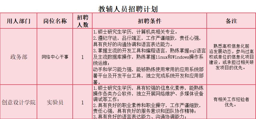 现新校区扩建,办学规模扩大,为提升学校事业发展需要,诚聘认同我校办学理念,愿投身高职教育事业、引领学生成长成才的优秀人才加盟,具体如下: