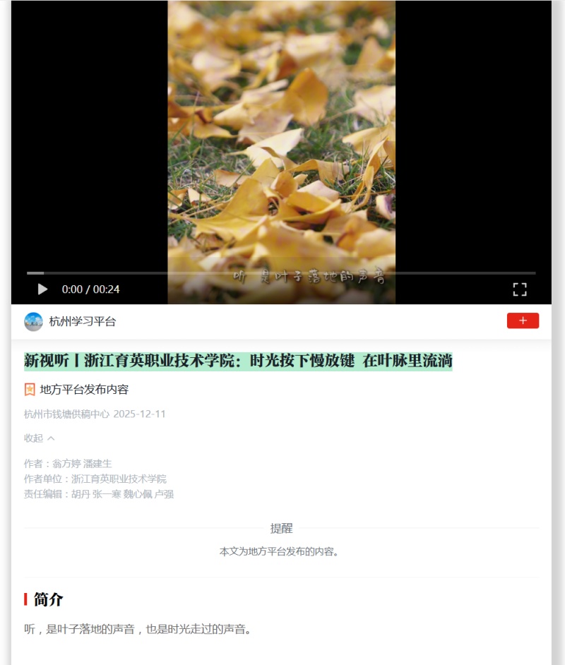【学习强国】新视听丨浙江育英职业技术学院:时光按下慢放键 在叶脉里流淌