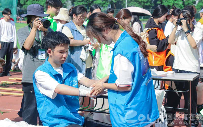 本次大赛以“人人会急救,技能护安康”为主题,包括卫生健康知识网络竞赛和救护技能决赛两部分。之前举行的卫生健康知识网络竞赛,覆盖2024级全体班级,共计3529位学生完成有效答卷。
