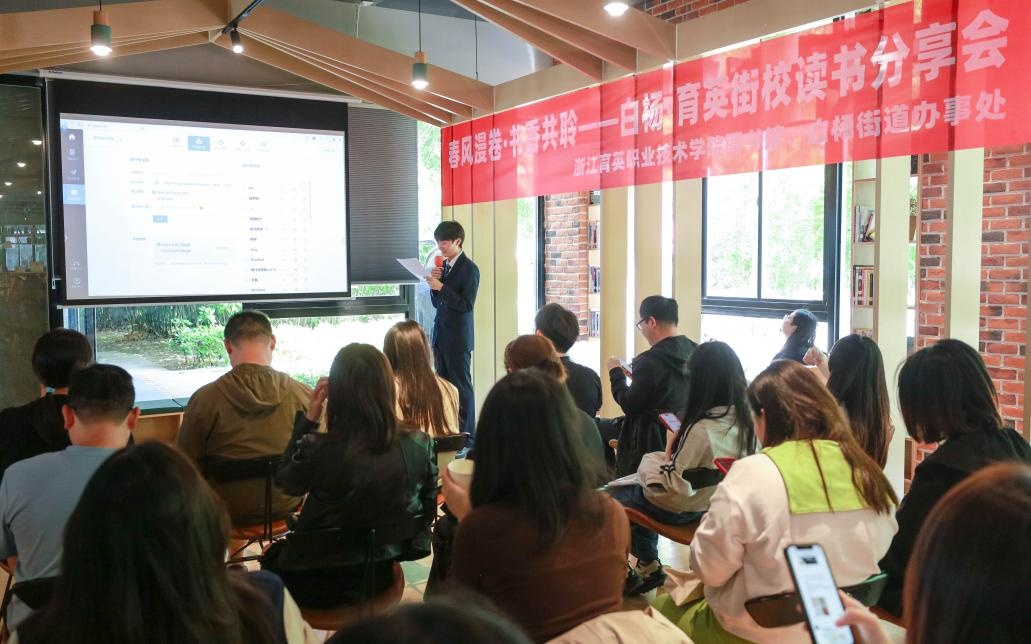 在第 30 个世界阅读日来临之际,一场主题为 “春风漫卷・书香共聆” 的街校读书分享会在浙江育英职业技术学院举行。此次活动由该校图书馆与白杨街道携手打造,吸引了百余名师生、社区工作者及文学爱好者踊跃参与,共同奏响了一曲阅读的动人乐章。