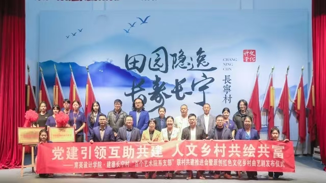 过去四年,拍摄宣传视频、进行直播带货、开展职业启蒙教育、设计农产品包装、举办大地时装秀、排演曲艺节目……这样的“乡村振兴大戏”,育英职院师生在建德各村镇上演了一场又一场。如创意设计学院在长宁村建立8个党员教师助农共富工作室,累计开展助农活动40余场,参与师生1000余人次,帮助“互助洗衣房、互助养老、互助菜园”等“互助文化”落地生根,形成了“党建共建+设计助农”的经验模式,助力长宁村获批浙江省首批“红色根脉”强基示范村。