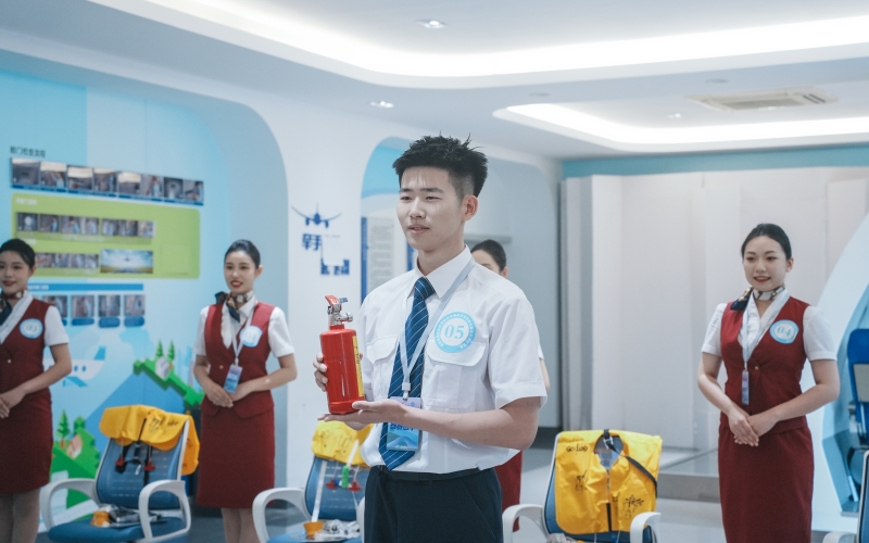 比赛期间,参赛选手们在理论知识、客舱服务、中英文机上广播、机上急救、安全演示与应急设备使用等环节进行比拼。
