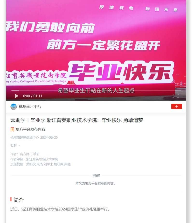 【学习强国】云助学丨毕业季·浙江育英职业技术学院:毕业快乐 勇敢追梦