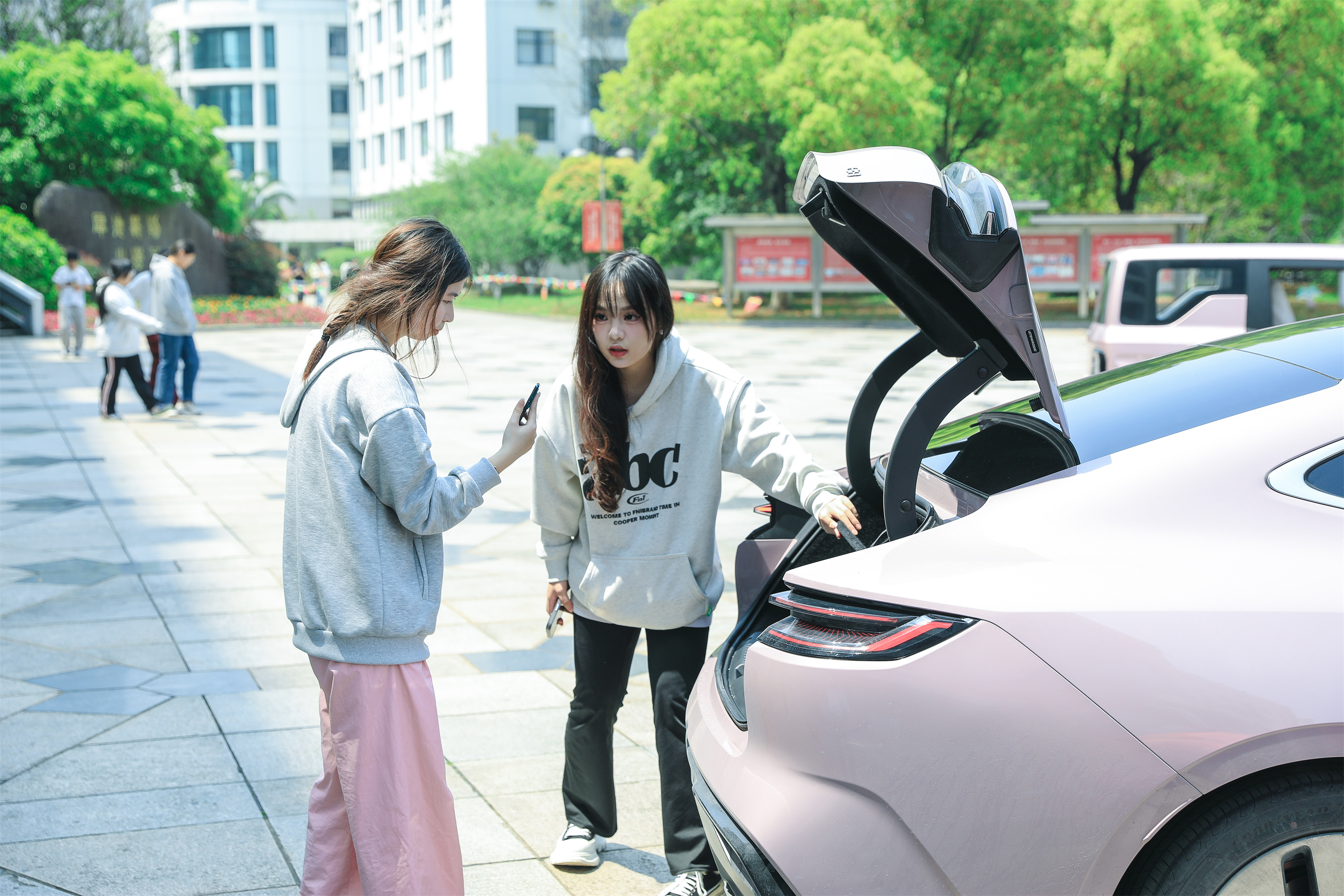 4月9日上午,浙江育英职业技术学院网络营销与直播电商专业22级学生陈佳慧、徐玉霖与同学们一起,早早地来到学校教学区广场,为校企合作单位吉利汽车的直播实践活动做准备。活动当天,他们使用视频号进行了一场直播实践,在镜头前向大家解说吉利汽车银河E8和熊猫mini两款车。按照活动流程,他们向观众展示了汽车的外观、内饰、性能等,并回答观众问题,给出合理建议。活动现场吸引了学校师生的关注,并获得了现场成交量。