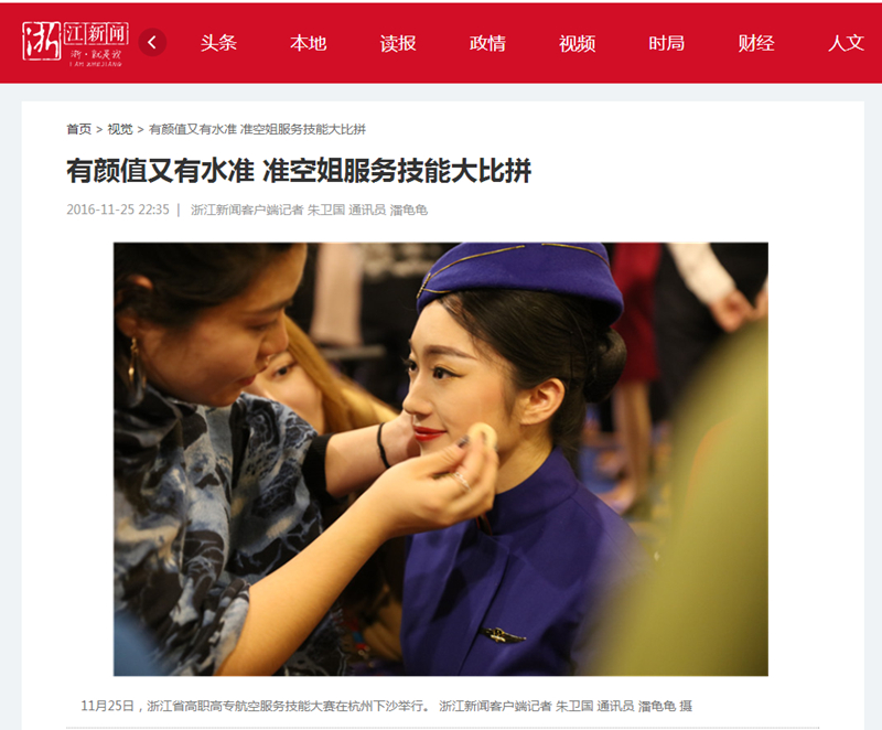 浙江新闻客户端报道我院承办浙江省航空服务技能大赛