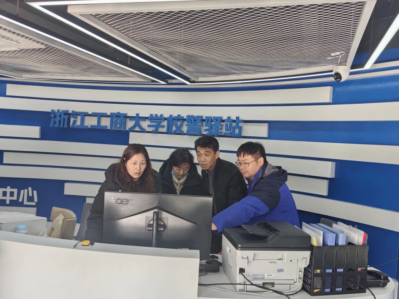 座谈会上,浙江工商大学安全保卫部详细介绍了5A平安校园创建的系统经验,双方围绕台账规范整理、安全管理机制搭建、风险防控实施、应急处理流程进行深入交流。会后,翻阅查看浙江工商大学5A平安校园迎评档案材料,从创建方案设计、工作台账整理到考核指标落实,逐一学习其规范化流程与系统化思路,为我校后续迎评档案整理工作明确了标准和方向。另外,通过在校园110指挥中心实地观看智慧安防系统运行,了解视频监控智能分析、风险自动预警、应急联动调度等智慧化管理模式,直观体会科技赋能校园安全防控的实际成效。随后,考察校警驿站的建设与运行情况,观摩设施配置、功能布局与日常运作流程,重点学习借鉴校园110接处警智能化管理平台建设情况,为我校校警联动机制优化提供了实践样本。