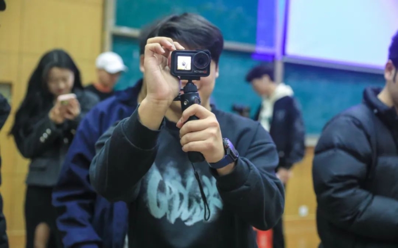 不仅如此,同学们还现场亲身体验各类摄影器材,从相机选型到无人机操控,在专业指导下,同学们不仅深入了解了器材的各项功能特性和适用场景,更通过实际操作,切实感受到了摄影艺术与技术结合的独特魅力。这种理论与实践相结合的方式,极大地激发了同学们对摄影的浓厚兴趣和热情。